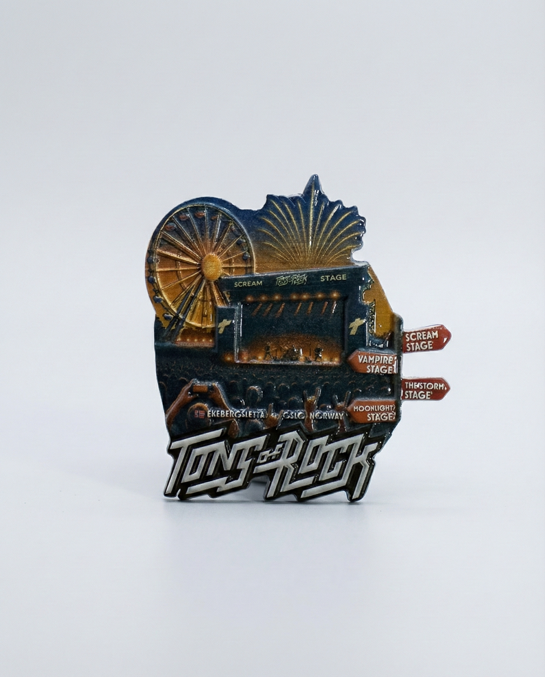 Gjør kjøleskapet ditt litt mer rocka med årets offisielle Tons of Rock kjøleskapsmagnet! Magneten er støpt i solid materiale og har et detaljert relieffdesign som gjengir festivalområdet – med scener, pariserhjul og ikoniske detaljer.